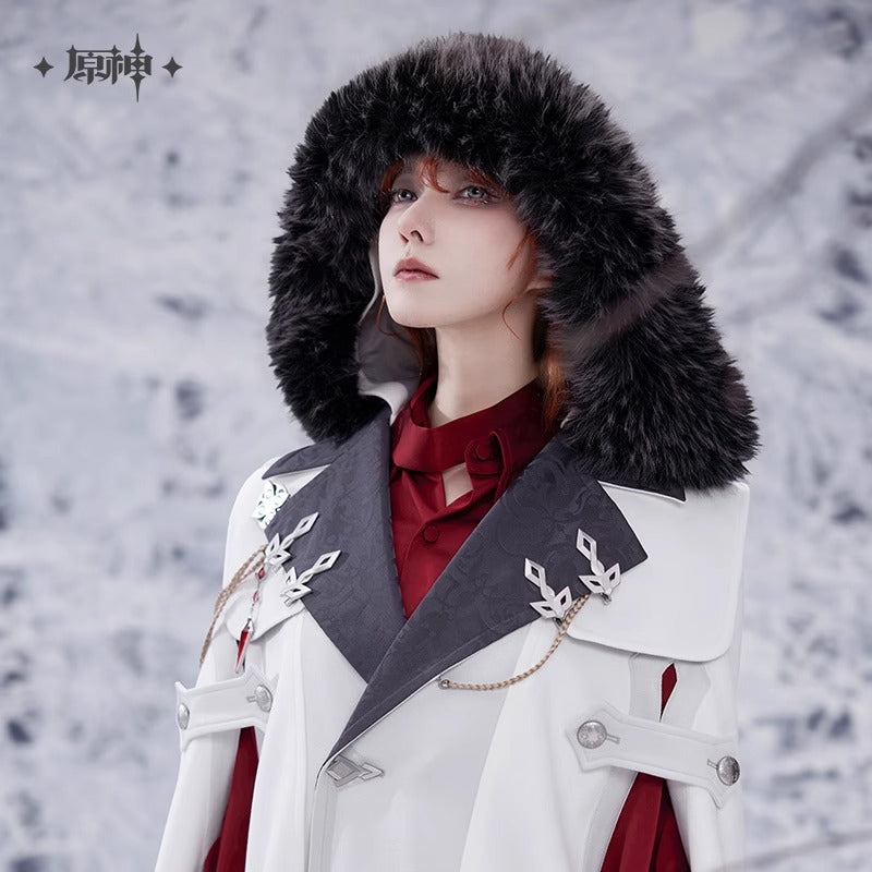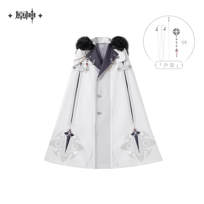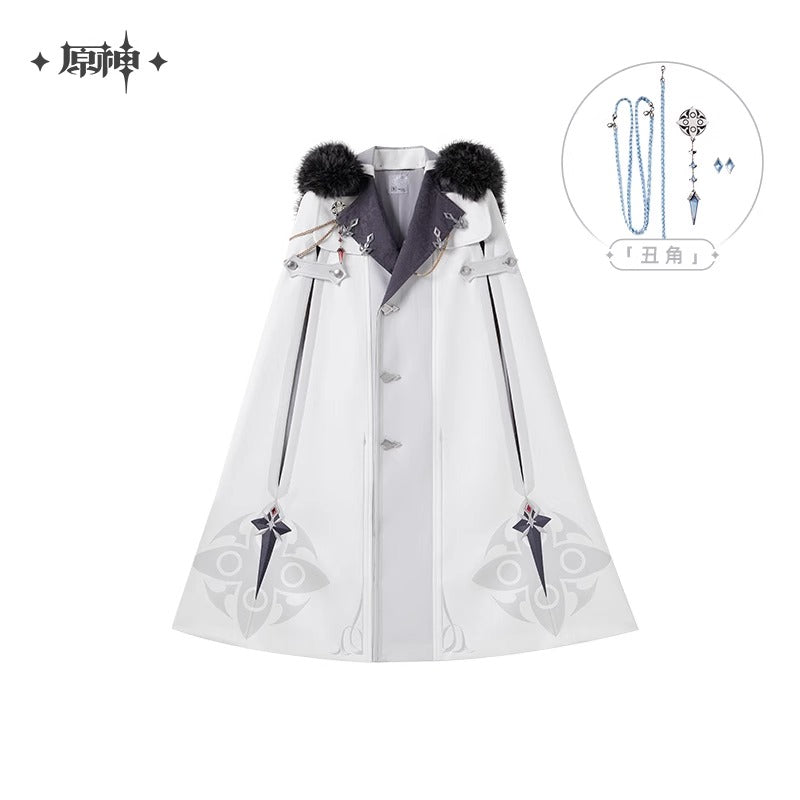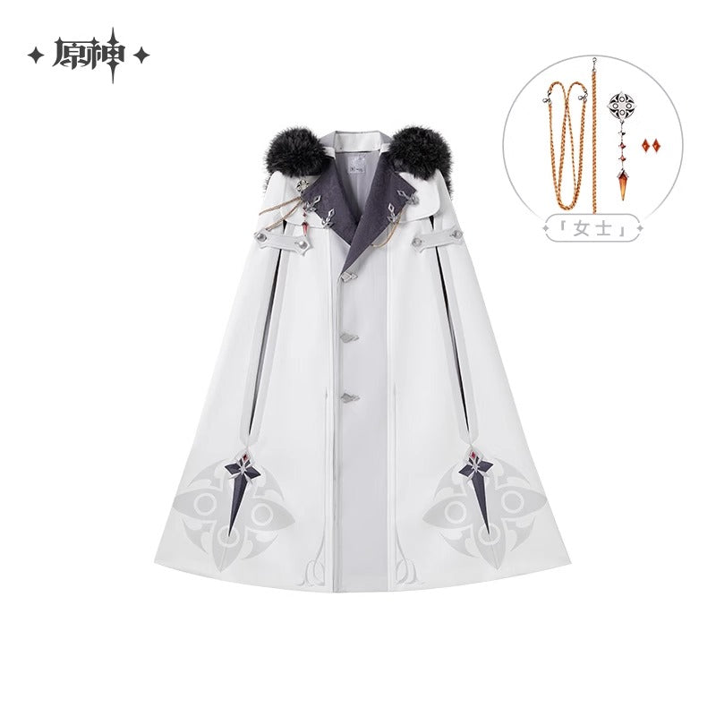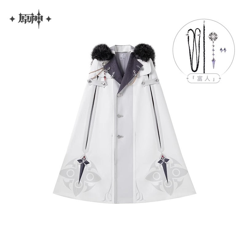 (Vente limitee jusqu'au 24/09/25) Manteau Cape a Capuche Avec Broche [Genshin Impact] - Fatui Harbinger Impressions - Frost and Flames Series